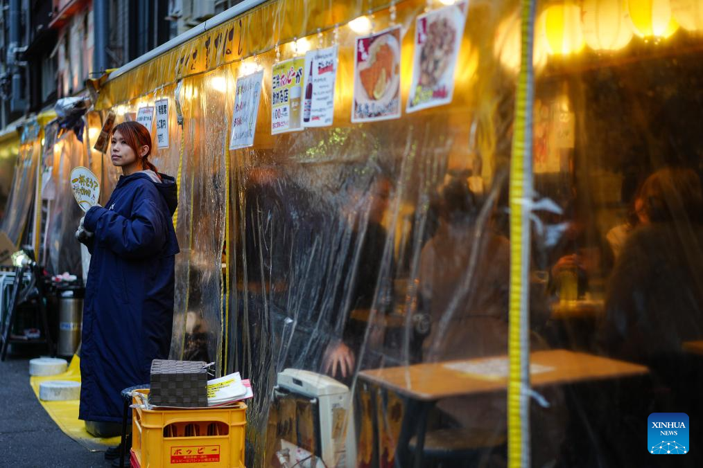 A restaurant staff member waits for customers near the Senso-ji Temple in Tokyo, Japan, Jan. 20, 2026. The number of visitors from the Chinese mainland to Japan plunged 45.3 percent from a year earlier in December 2025, official data showed.