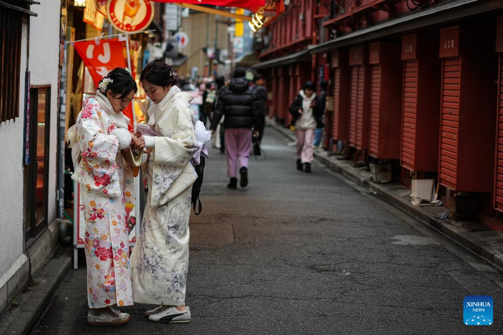 Tourists visit the vicinity of the Senso-ji Temple in Tokyo, Japan, Jan. 20, 2026. The number of visitors from the Chinese mainland to Japan plunged 45.3 percent from a year earlier in December 2025, official data showed.
