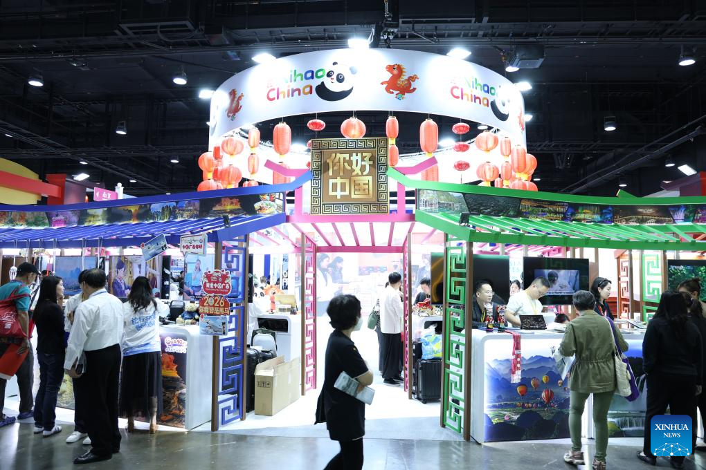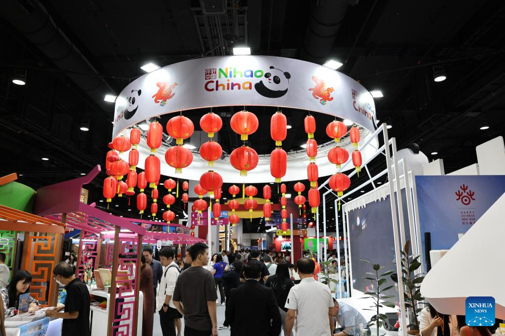 People visit the China pavilion during the 31st Thai International Travel Fair in Bangkok, Thailand, Jan. 22, 2026. The fair opened here on Thursday, and will last until Jan. 25. (Xinhua/Liu Yang)