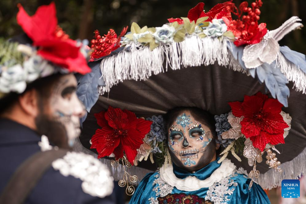 A costumed performer is pictured during the Villa-Zapata carnival in Mexico City, Mexico, on Dec. 6, 2025. The 11th Villa-Zapata carnival was hosted in Mexico City on Saturday. Folkloric dances, traditional music, and street processions were seen along the Paseo de la Reforma avenue during the event, promoting traditional Mexican culture while paying tribute to revolutionary leaders Emiliano Zapata and Francisco Villa in the Mexican Revolution of 1910-1920. (Xinhua/Li Mengxin)