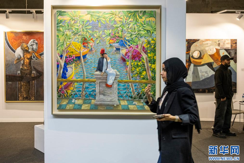 1月26日,在埃及吉萨的大埃及博物馆,观众参观开罗艺术展。