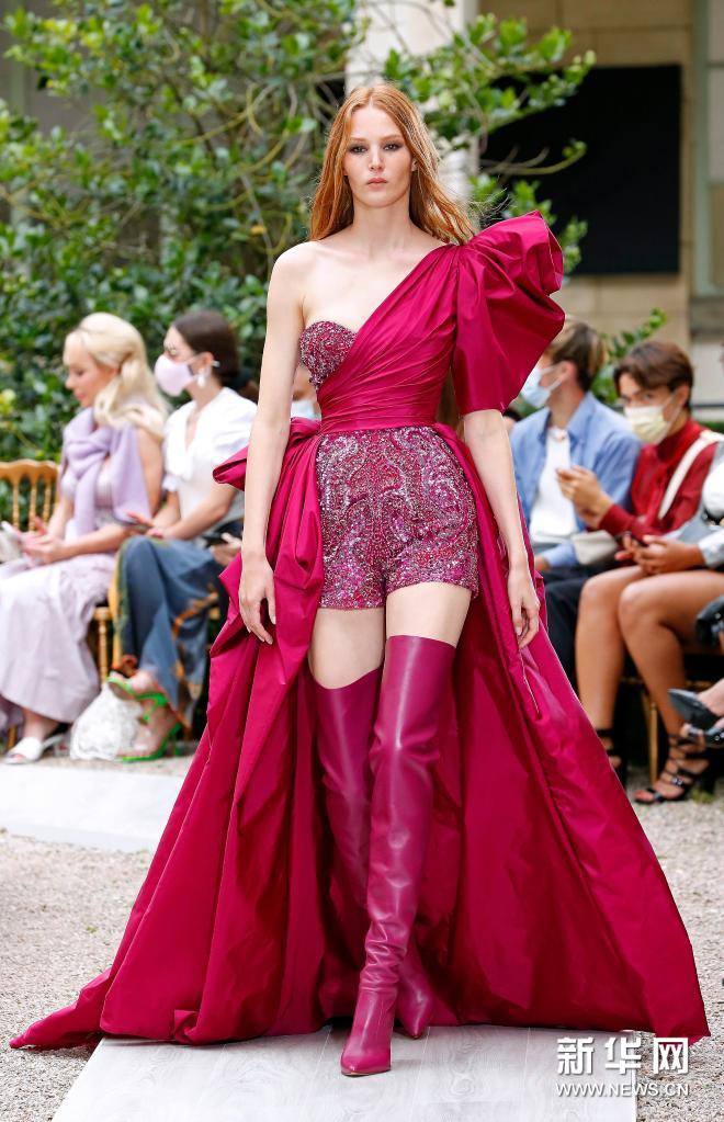 7月7日,模特在法國巴黎高級定制時(shí)裝周上展示Zuhair Murad品牌2021/2022秋冬新品。