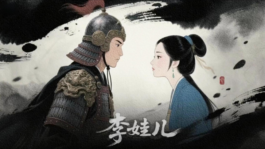 水墨国风,铁骨柔情: 获奖作品《李娃儿》以极具东方神韵的水墨美学,细腻重现了岳飞与李娃儿的故事。AI技术不仅还原了历史的厚重,更刻画出英雄背后的似水柔情,画面唯美,直抵人心。