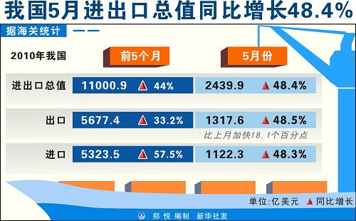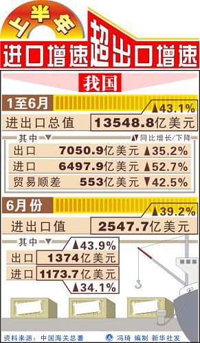 圖表:2010年1-6月份我國進出口總額達13549億美元