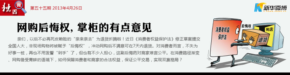 【賣家能有保障嗎?】 網(wǎng)絡(luò)是虛擬的,網(wǎng)購(gòu)卻是實(shí)體的。為了防止消費(fèi)者的惡意退貨,甚至以此為要挾出現(xiàn)職業(yè)退貨族,可以考慮非質(zhì)量問題的無理由退貨收取手續(xù)費(fèi)。這應(yīng)該是“后悔權(quán)”對(duì)于賣家的一個(gè)保障!