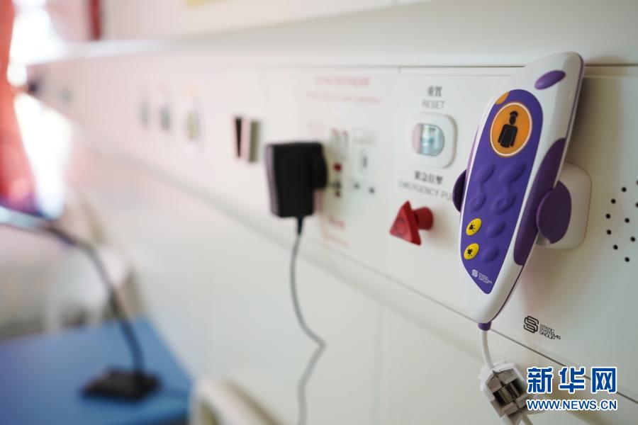 安心、溫馨,這是記者對(duì)病房的第一印象。一間病房設(shè)置6張床位和一個(gè)衛(wèi)生間,病床分兩排,每張床配有一把椅子、一個(gè)床頭柜和一張床上桌,床上鋪蓋一套淺色碎花寢具,床頭背靠的墻面上配備各類醫(yī)用檢測(cè)儀器,病房內(nèi)還有智能生態(tài)儀器,方便醫(yī)護(hù)人員測(cè)試病患情況。