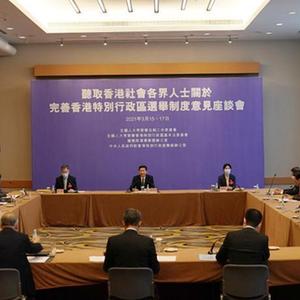 2月28日至3月1日,中央有關(guān)部門在深圳市召開座談會,廣泛、充分聽取香港社會各界代表人士對完善“愛國者治港”有關(guān)制度的意見。全國兩會期間,相關(guān)部門又以多種方式,逐一聽取了港區(qū)全國人大代表、政協(xié)委員的意見。
