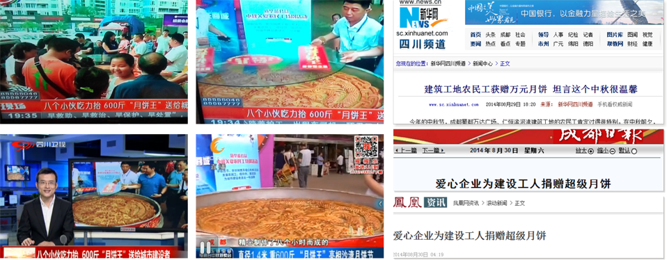 11:30許,在仁恒濱河灣建筑工地活動(dòng)板房前,諾大的月餅已經(jīng)擺放在農(nóng)民工兄弟代表面前?!拔以缇吐犝f你們要來給我們送月餅,但是沒想到這個(gè)月餅居然這么大!”來自廣西的小姚不禁感嘆道。據(jù)記者了解,小姚雖然今年只有29歲,但是已經(jīng)做建筑工人快10年了。2011年帶女兒一起來到成都,足足已有三年沒有和家人一起過中秋節(jié)了。