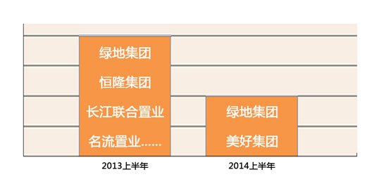 | 2013上半年,綠地集團、恒隆集團、長江聯(lián)合置業(yè)、名流置業(yè)(現(xiàn)更名為美好集團)等多家標桿房企積極拿地……
