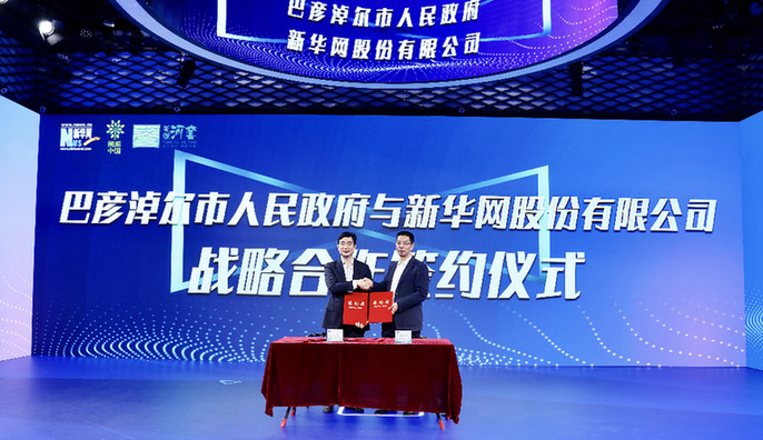 5月27日,巴彥淖爾市人民政府與新華網(wǎng)戰(zhàn)略合作簽約儀式在京舉行。圖為簽約儀式現(xiàn)場。新華網(wǎng) 張 斌 攝