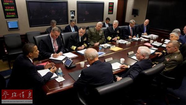 ??? 資料圖:2009年10月,美國總統(tǒng)奧巴馬在白宮時局值班室與美軍參謀長聯席會議成員及高級軍事顧問商討阿富汗作戰(zhàn)事宜。