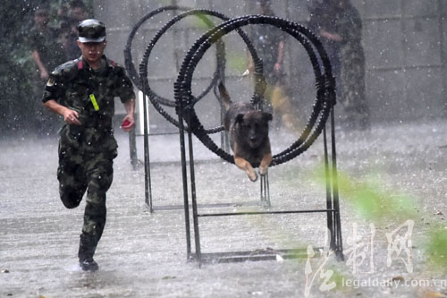 廣東深圳邊防暴雨中訓犬錘煉血性