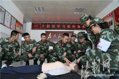 圖為邊防總醫(yī)院急診科醫(yī)生指導(dǎo)基層官兵學(xué)習(xí)心肺復(fù)蘇急救技能
