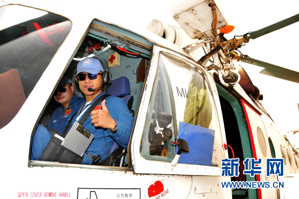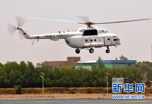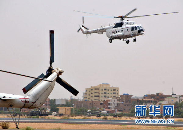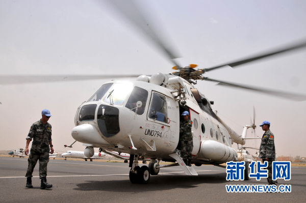 ?。吩拢常比?,中國(guó)首批維和直升機(jī)分隊(duì)在蘇丹喀土穆國(guó)際機(jī)場(chǎng)成功首飛。