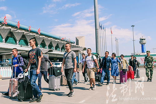 圖為新學(xué)員抵達(dá)烏魯木齊機(jī)場