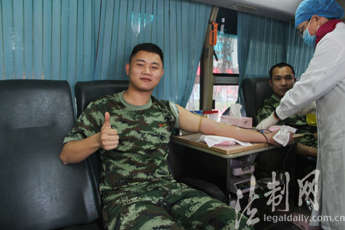 圖為官兵為“第二故鄉(xiāng)”獻(xiàn)血