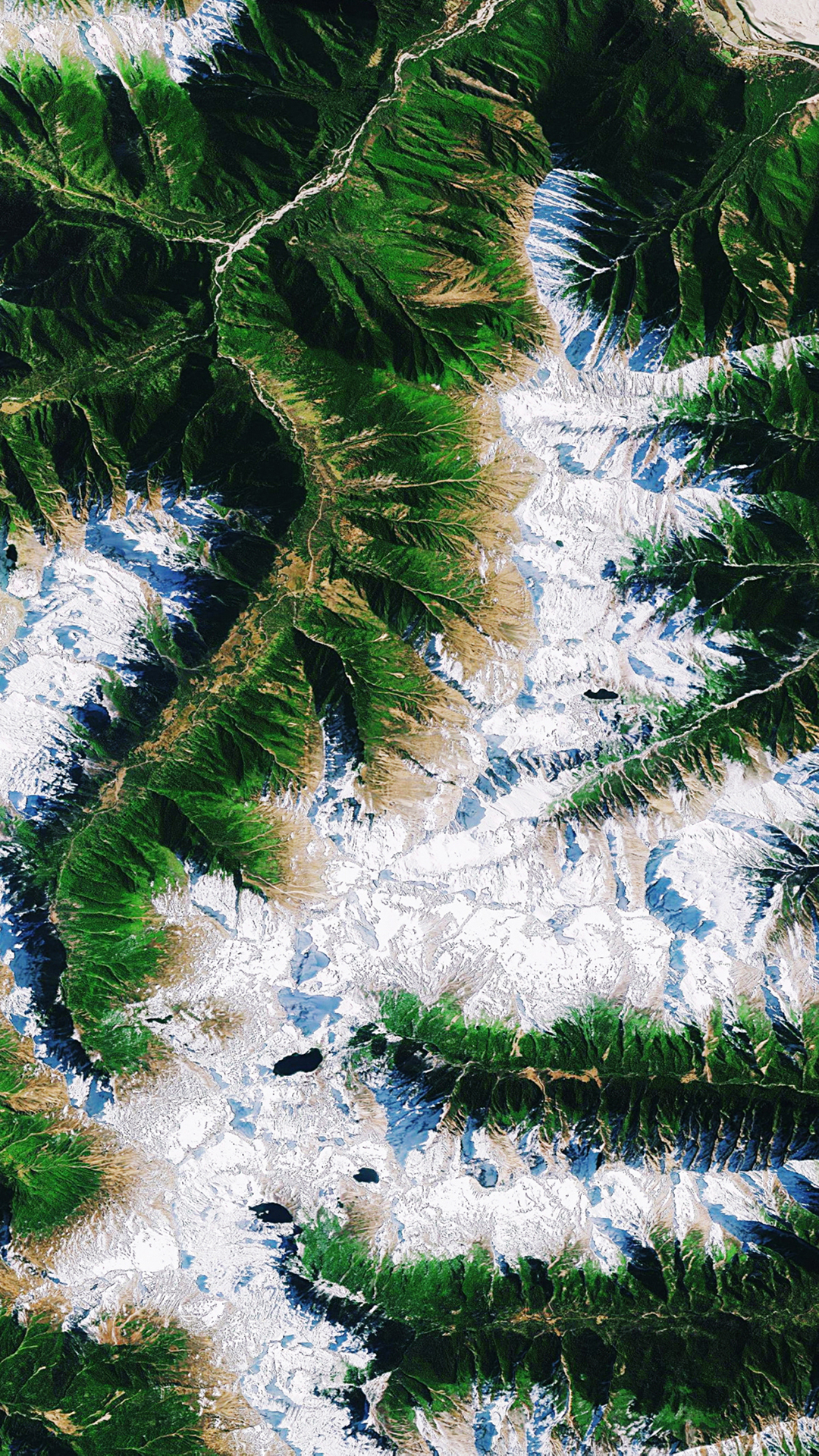 ▲圖為西藏自治區(qū)墨脫縣局部衛(wèi)星圖,這是一個(gè)森林與冰雪相生相伴的地方。衛(wèi)星數(shù)據(jù)來(lái)源:資源三號(hào)