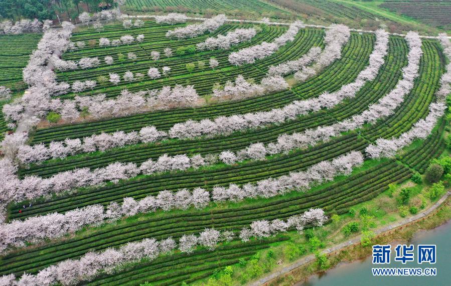 這是3月20日拍攝的南昌縣鳳凰溝景區(qū)盛開的櫻花(無人機(jī)照片)。