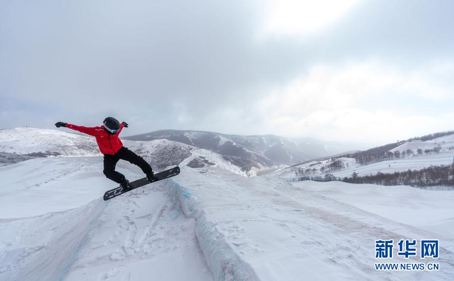 3月20日,冬殘奧會國家集訓(xùn)隊單板滑雪運動員賀一朋在冬殘奧會訓(xùn)練基地訓(xùn)練。