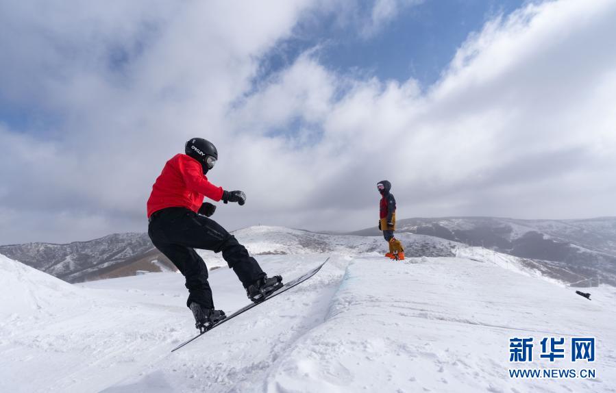 3月20日,冬殘奧會國家集訓(xùn)隊單板滑雪運動員巖溫的(左)在冬殘奧會訓(xùn)練基地訓(xùn)練。新華社記者 才揚 攝