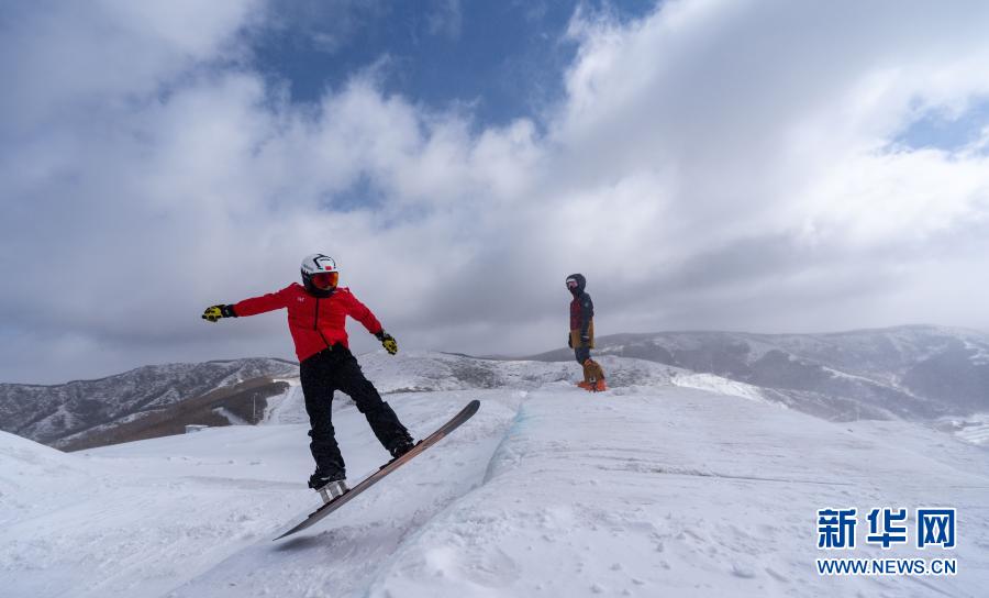 3月20日,冬殘奧會(huì)國(guó)家集訓(xùn)隊(duì)單板滑雪運(yùn)動(dòng)員許祥(左)在冬殘奧會(huì)訓(xùn)練基地訓(xùn)練。新華社記者 才揚(yáng) 攝