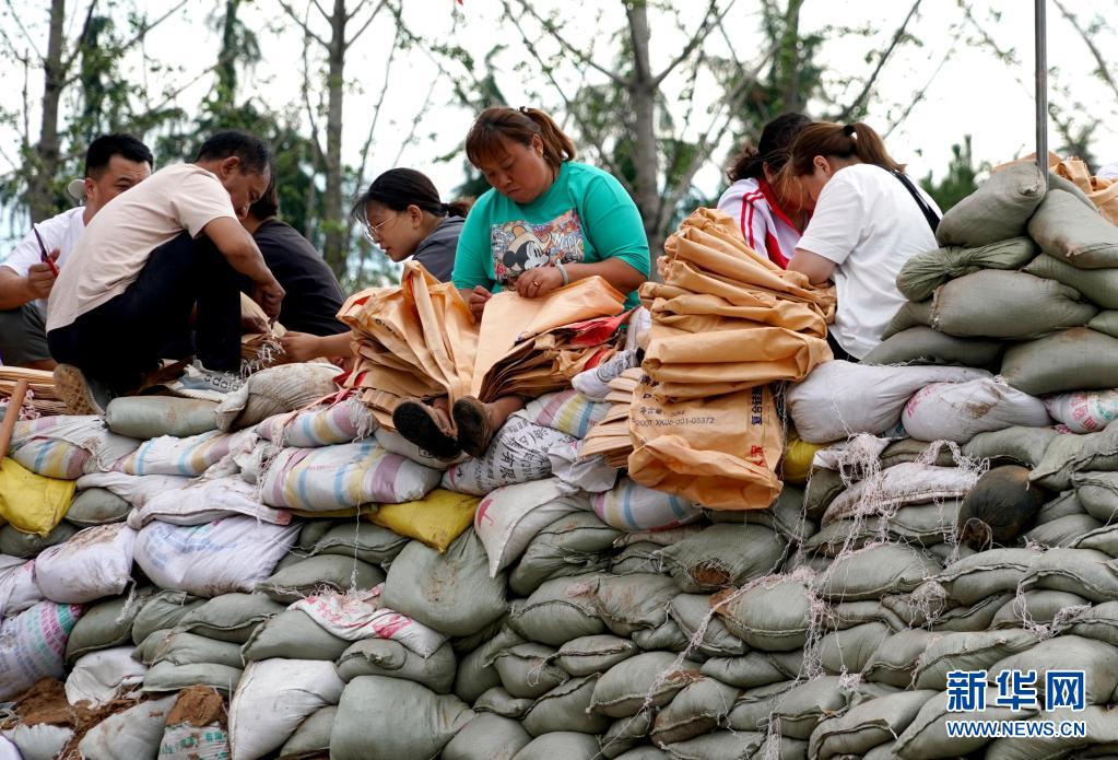 當(dāng)日,在河南省鶴壁市??h傅莊堤上,不少群眾自發(fā)前來(lái)和救援人員一起裝沙袋、運(yùn)沙袋,共筑堤壩。受持續(xù)強(qiáng)降雨影響,??h防汛形勢(shì)嚴(yán)峻,傅莊堤主要為??h縣城及26個(gè)村莊提供保護(hù)。新華社記者 李安 攝