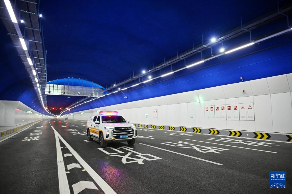 12月26日,一辆高速公路巡查车在老虎山隧道内行驶。