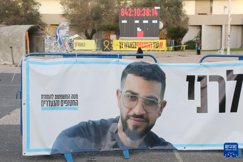 这是1月26日在以色列特拉维夫一处广场拍摄的被扣押人员拉恩·格维利的海报。