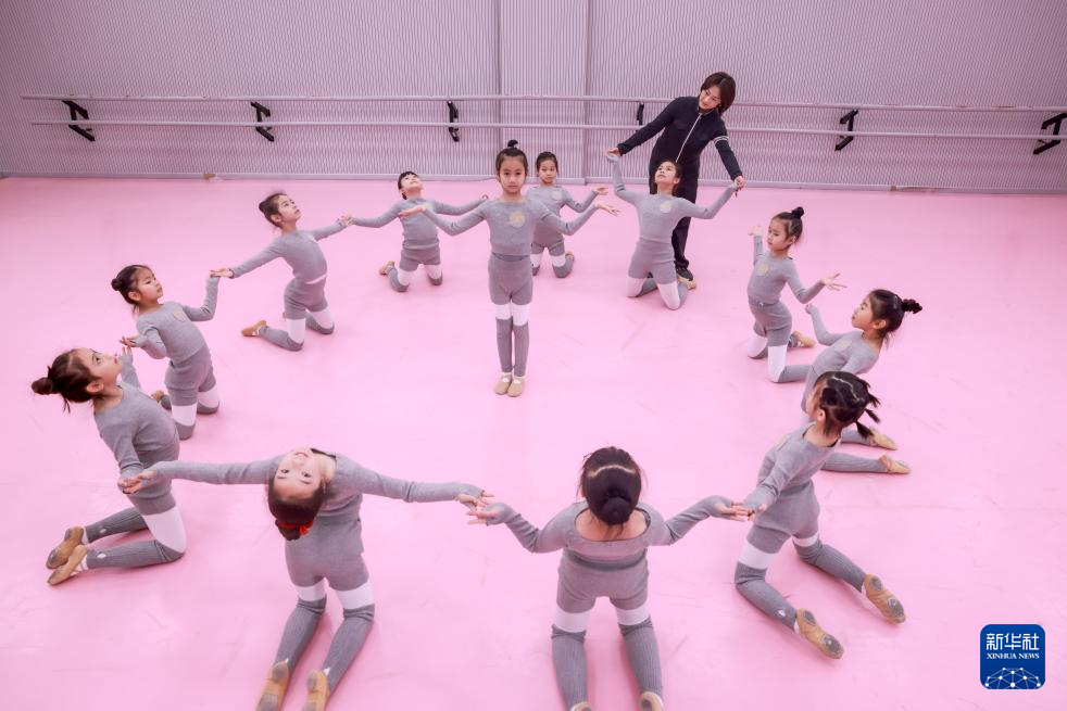 2月8日,在湖北省歌剧舞剧院艺术教育中心,孩子们在舞蹈老师指导下排练舞蹈节目。