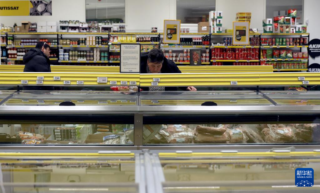 2月8日,在丹麦自治领地格陵兰岛首府努克,人们在一家超市内采购。