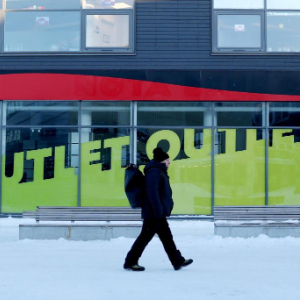 2月8日,在丹麦自治领地格陵兰岛首府努克,一名男子走过一家商场。