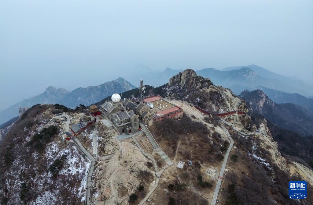 2月5日拍摄的位于泰山日观峰峰顶的泰山气象站(无人机照片)。
