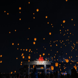 2月10日,在重庆市磁器口古镇,千盏孔明灯齐放夜空。