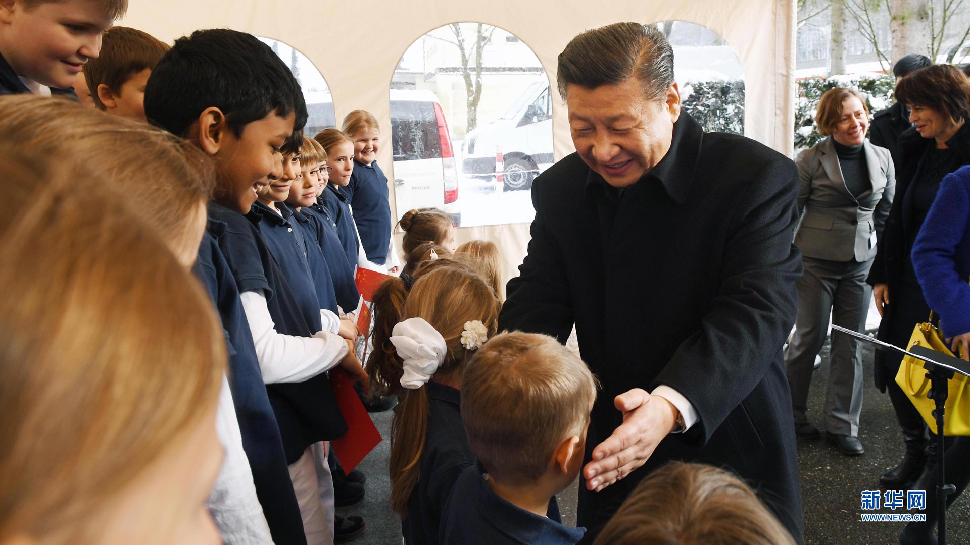 1月15日,國(guó)家主席習(xí)近平在瑞士聯(lián)邦主席洛伊特哈德陪同下,乘坐瑞士政府專列自蘇黎世前往瑞士首都伯爾尼。在專列行進(jìn)過(guò)程中,習(xí)近平和夫人彭麗媛受洛伊特哈德主席夫婦邀請(qǐng),在輕松愉快的氛圍中品茶暢談。這是習(xí)近平在伯爾尼克爾薩茨火車站觀看瑞士童聲合唱團(tuán)表演后,與合唱團(tuán)的小演員交流。 新華社記者饒愛民攝2017-01-16