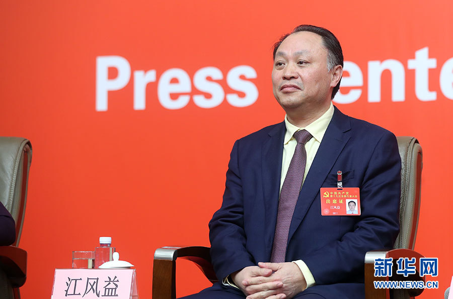 ??? 10月20日,十九大新聞中心舉辦集體采訪活動,主題為“實施創(chuàng)新驅動發(fā)展戰(zhàn)略”。圖為南昌大學黨委常委、副校長江風益。新華網 郝廣鵬攝