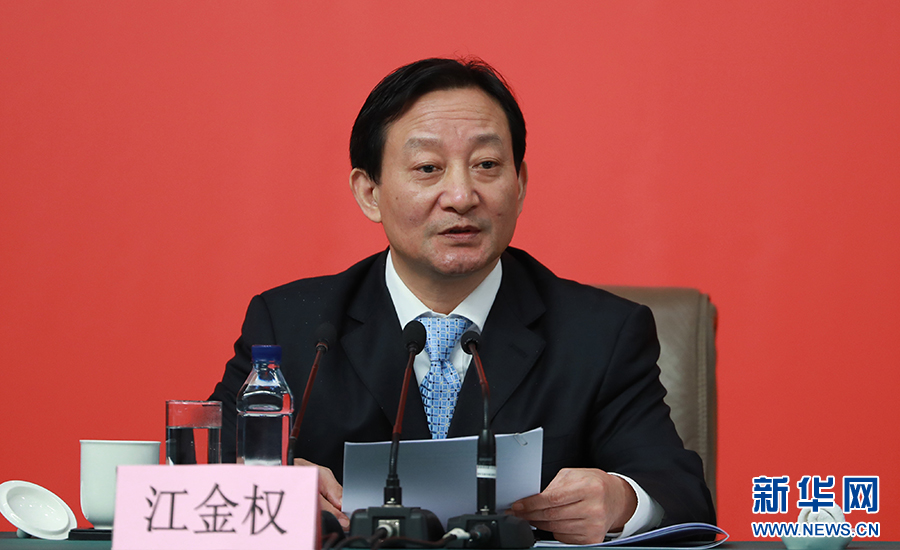 10月26日上午10:00,中國共產黨第十九次全國代表大會新聞發(fā)言人在梅地亞賓館二層新聞發(fā)布廳召開專題新聞發(fā)布會,請有關方面負責人解讀十九大報告,并回答記者關心的問題。圖為中央紀委駐國資委紀檢組組長、國資委黨委委員江金權。新華網(wǎng) 翟子赫 攝
