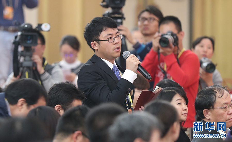 10月26日上午10:00,中國共產黨第十九次全國代表大會新聞發(fā)言人在梅地亞賓館二層新聞發(fā)布廳召開專題新聞發(fā)布會,請有關方面負責人解讀十九大報告,并回答記者關心的問題。圖為中國日報記者提問。新華網 王成云 攝