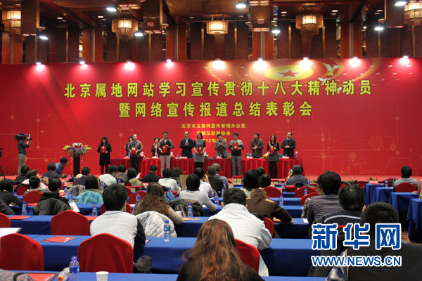 ??? 新華網(wǎng)北京11月28日電(記者 陳元)27日,北京市互聯(lián)網(wǎng)宣傳管理辦公室召開北京屬地網(wǎng)站學(xué)習(xí)宣傳貫徹黨的十八大精神動(dòng)員大會(huì)暨網(wǎng)絡(luò)宣傳報(bào)道總結(jié)表彰會(huì)。
