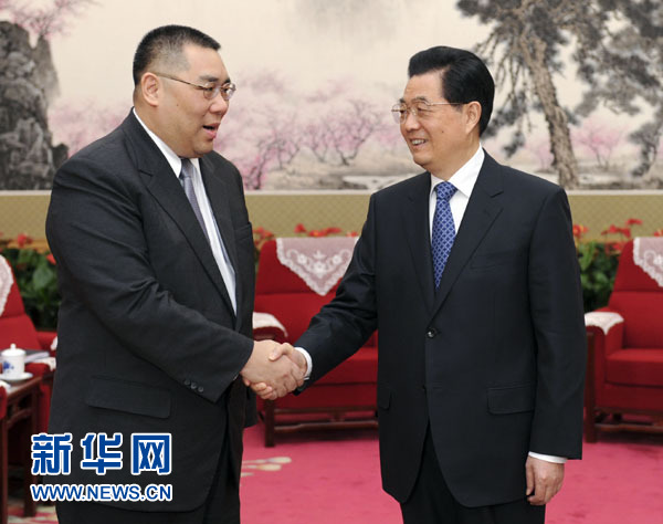 ??? 新華網(wǎng)快訊:國家主席胡錦濤21日下午在中南海會(huì)見了來京述職的澳門特別行政區(qū)行政長官崔世安。