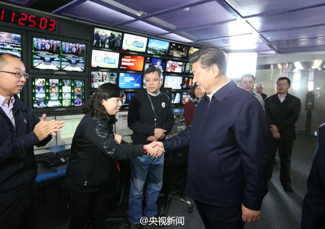 11時15分,習(xí)近平一行人出現(xiàn)在中央電視臺。