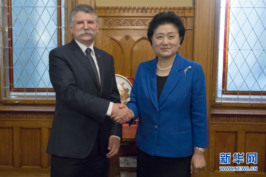 6月19日,在匈牙利布達佩斯,中國國務院副總理劉延東(右)會見匈牙利國會主席克韋爾。? 新華社發(fā)(弗爾季·奧蒂洛攝)