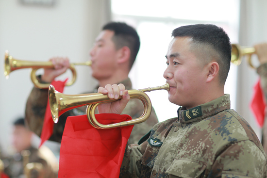楊鵬作為武警新疆總隊曾經(jīng)的一名小號手,很快就掌握了氣息的運用。他正在向下一個目標進發(fā),爭取盡快能夠完整吹奏11個標準號譜,因為只有先一步學(xué)會了,他才能去指導(dǎo)更多的同學(xué)。