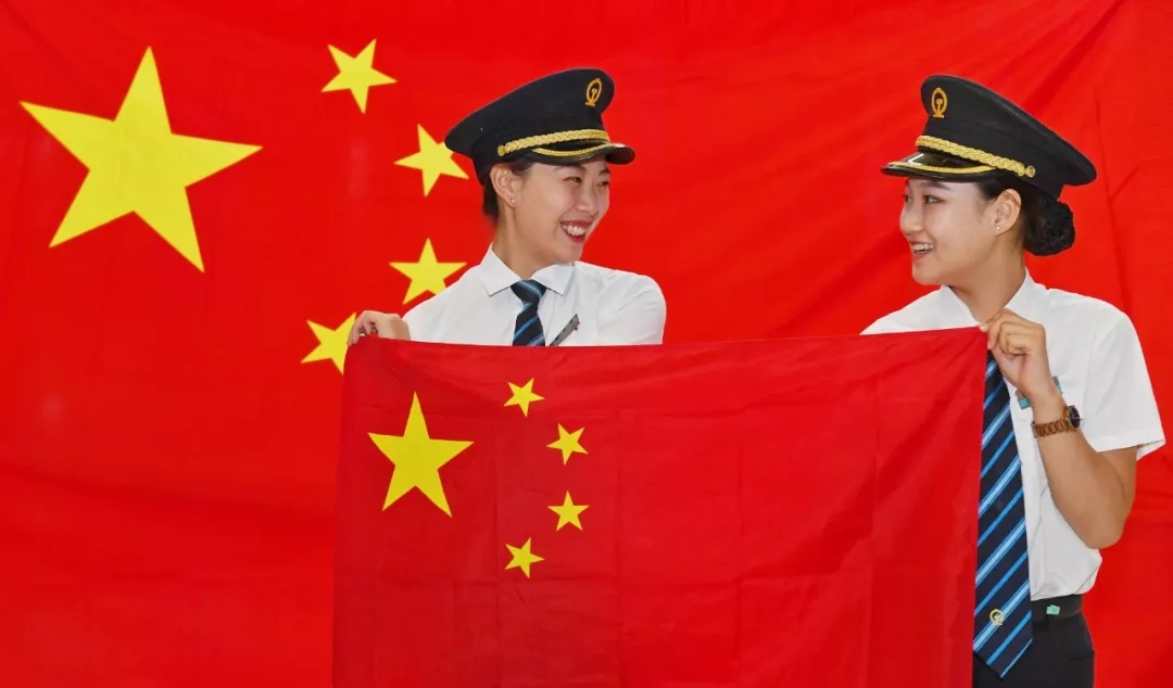 2019年9月30日,新疆阜康。我和國旗合個影,祖國見證我成長。作者:安娜