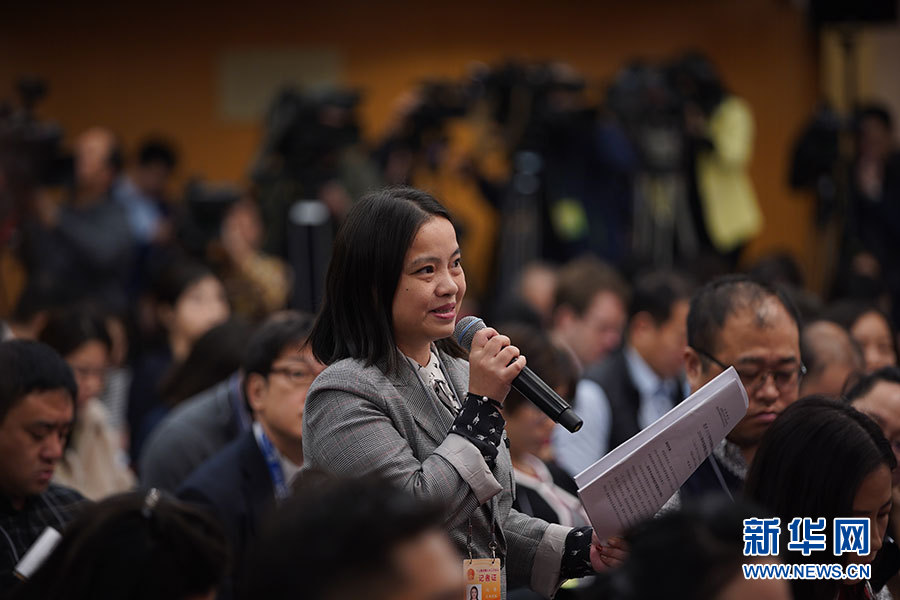 ????十三屆全國(guó)人大二次會(huì)議新聞中心3月7日9時(shí)在梅地亞中心新聞發(fā)布廳舉行記者會(huì),邀請(qǐng)財(cái)政部部長(zhǎng)劉昆,副部長(zhǎng)程麗華、劉偉就“財(cái)稅改革和財(cái)政工作”相關(guān)問(wèn)題回答中外記者提問(wèn)。圖為成都商報(bào)紅星新聞?dòng)浾咛釂?wèn)。新華網(wǎng)/中國(guó)政府網(wǎng) 劉廈 攝