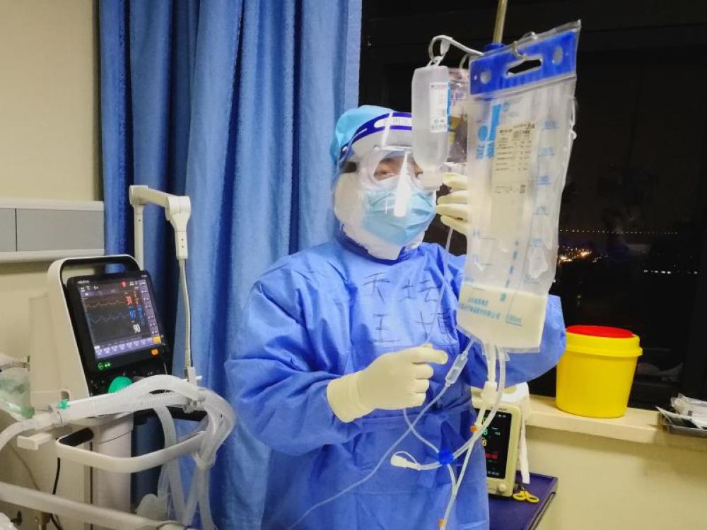 沒有時間坐下來,緊接著需要檢查各個儀器運轉(zhuǎn)是否正常、管路連接是否完好,最后幫患者擦拭了身體,保持患者皮膚清潔干燥是我們護理的要求。自己又是一身汗,我覺得防護服里面的衣服已經(jīng)貼在了身上。