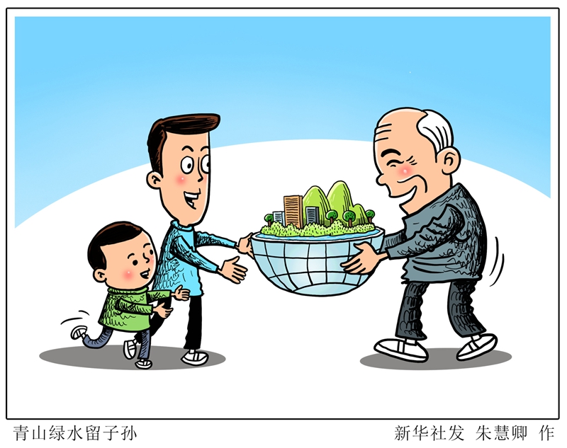 漫畫(huà):青山綠水留子孫 新華社發(fā) 朱慧卿 作