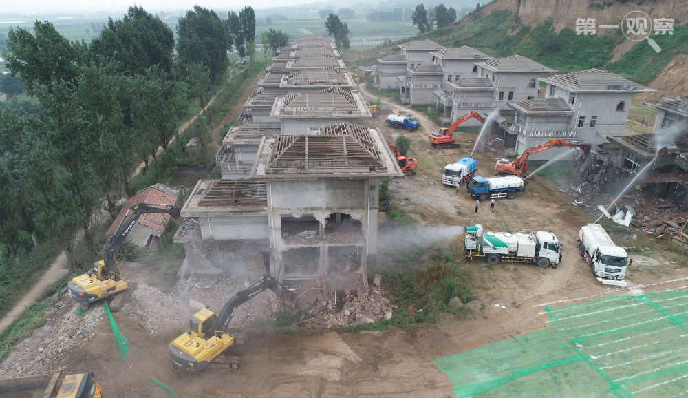 2018年8月14日,大型機械對西安市鄠邑區(qū)蔣村鎮(zhèn)的違建別墅進行拆除。(新華社記者 邵瑞 攝)
