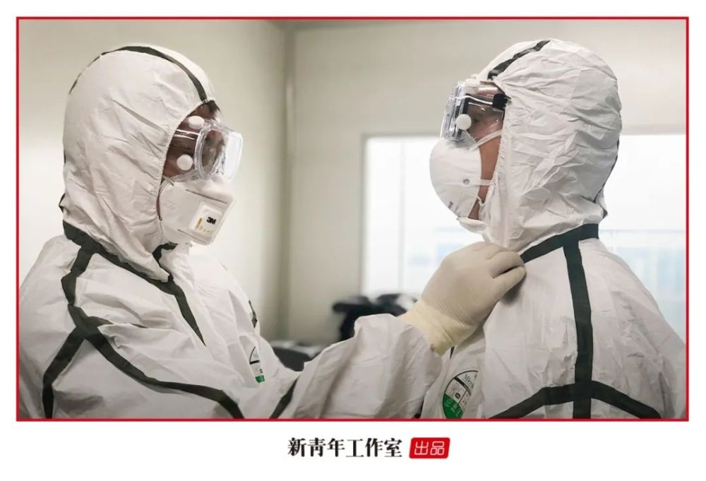 做核酸檢測需要戴上雙層手套、帽子、護(hù)目鏡、靴套,還要穿上連體防護(hù)服等個(gè)人裝備,并用膠布將防護(hù)服所有的縫隙全部粘合起來,密不透氣。
