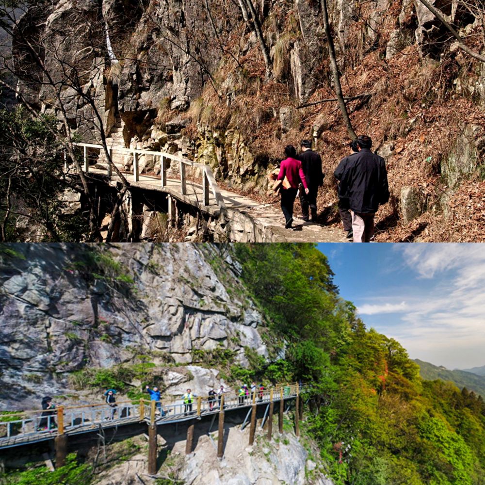 ?。ㄉ蠄D:2002年的天堂寨,新華社記者于杰攝;下圖2018年的馬鬃嶺自然保護區(qū)。新華社記者郭晨攝)