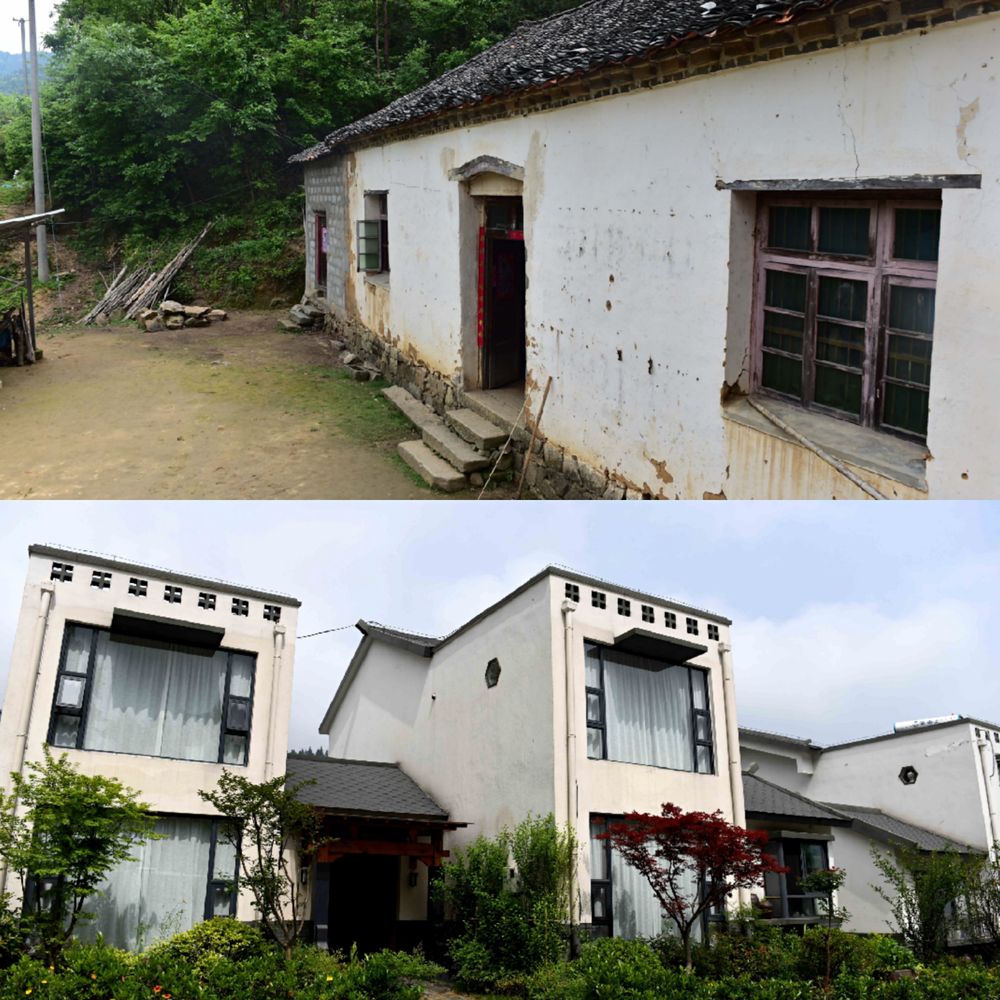 ?。ㄉ蠄D:過去金寨人守著柴火過日子,新華社記者張曙光攝;下圖:2020年4月16日,大灣村村民在金寨縣花石鄉(xiāng)茶產(chǎn)業(yè)扶貧車間里加工茶葉。新華社記者劉軍喜攝)